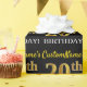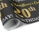 Ce design papier d’emballage comporte un message comme "20e anniversaire de CustomName!", le "20e" ayant une apparence de couleur fausse/imitation or. Le nom peut être customisé, et l'arrière - plan est noir de couleur. Il pourrait peut-être être utilisé pour envelopper les cadeaux donnés pour le vingtième anniversaire de quelqu’un. [~Z0000177]