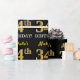 Ce design papier d’emballage comporte un message comme "34e anniversaire de Michelle!", le "34e" ayant une apparence de couleur fausse/imitation or. Le nom peut être personnalisé, et l'arrière - plan est de couleur noire. Il pourrait peut-être être utilisé pour envelopper les cadeaux donnés pour le trente-quatrième anniversaire de quelqu’un. [~Z0000177]