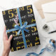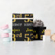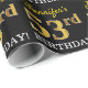 Ce design papier d’emballage comporte un message comme "53e anniversaire de Jennifer!", le "53e" ayant une apparence de couleur fausse/imitation or. Le nom peut être personnalisé, et l'arrière - plan est de couleur noire. Il pourrait peut-être être utilisé pour envelopper les cadeaux donnés pour le cinquante-troisième anniversaire de quelqu’un. [~Z0000177]