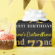 Ce design papier d’emballage comporte un message comme "72e anniversaire de CustomName!", le "72e" ayant une apparence de couleur fausse/imitation or. Le nom peut être customisé, et l'arrière - plan est noir de couleur. Il pourrait peut-être être utilisé pour envelopper les cadeaux donnés pour le soixante-douzième anniversaire de quelqu’un. [~Z0000177]