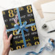 Ce design papier d’emballage comporte un message comme "85e anniversaire de prénom!", le "85e" ayant une apparence de couleur fausse/imitation or. Le nom peut être personnalisé, et l'arrière - plan est de couleur noire. Il pourrait peut-être être utilisé pour envelopper les cadeaux donnés pour le quatre-vingt-cinquième anniversaire de quelqu’un. [~Z0000177]