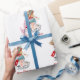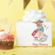 Une jolie scène hivernale moderne avec un traîneau sur un arrière - plan blanc portant des cadeaux de Noël avec le nom de tout le monde dessus. Personnalisez-le !