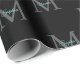 Papier Cadeau Nom du script turquoise, Monogramme gris grand sur