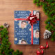 Enveloppez votre cadeau dans le style Art déco avec cet emballage cadeau photo personnalisé ! Un motif géométrique transparent, avec cadres décoratifs, formes diamant, étoiles et typographie stylisée. Personnalisez le modèle avec une photo préférée, le nom du récipiendaire et l'âge d'anniversaire. Une façon luxueuse et unique de célébrer un anniversaire spécial pour la famille et les amis! Couleurs imprimées : bleu foncé, blanc et or. Disponible avec un choix de finition mate ou brillante.