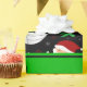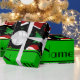 Moderne et tendance Boules de volley-ball noir, santa claus, arbres de Noël verts, étoiles rouges, vertes et jaunes, flocons de neige blancs, neige, chapeaux de santa rouge arrière - plan et bandes vertes personnalisées avec juste ajouter vos cadeaux de nom ou de monogramme ou vos initiales pour un cadeau unique. Des idées cadeaux de sport pour hommes, garçons et filles. Idéal pour les cadeaux de noël.