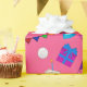 Des idées cadeaux d'anniversaire pour les femmes et les filles. Moderne et tendance motif de fête d'anniversaire de nom personnalisé avec ballons d'anniversaire bleu, casquettes d'anniversaire rose, cadeaux rose bleu, gâteau blanc avec bougie, pops de gâteau à la vanille, et l'arrière - plan de bouquet arc-en-ciel avec bande cardiaque personnalisée avec juste ajouter vos cadeaux de nom ou de monogramme ou vos initiales pour un cadeau unique. Idéal pour les fêtes d'anniversaire.
