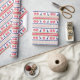 The repeated pattern on this colorful Christmas Nordic sweater style gift wrapping paper is a silhouette basketball player among snowflakes , trees, and geometric designs. Colors include navy blue, bright Holiday green, and red, all on a white background. Fun for anyone who loves to play basketball!
