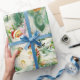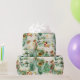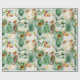 Ce motif a une conception de papier d'emballage de Noël vintage. Il a un motif extensible avec une palette de couleurs douces et défraîchies, principalement dans les tons vert menthe, blanc et muet rouge/or. Le design comprend des éléments de vacances classiques : les arbres de Noël (décorés de neige blanche/flocage) Les grands ornements (certains ronds, certains allongés et détaillés) les petits Sucres de canne et les petits arcs/couronnes Le Père Noël se penche sur un tapis blanc ou un nuage Les petites figures d'anges avec des ailes Une scène extérieure hivernale montrant une maison, des arbres et un traîneau à cheval traversant un pont Les mots "Joyeux Noël" sont éparpillés dans le motif. L'ensemble est nostalgique et d'un esprit du milieu du siècle.