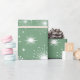 Mid-century star and snowflake pattern on a light sage green background.