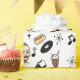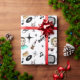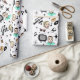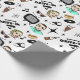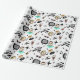 Emballage cadeau à thème Anniversaire ou Anniversaire des années cinquante avec des graphiques d'albums vinyles, des notes musicales, un couple de danse, des milk-shakes, conduire en signe, tvs hotdogs et d'autres images amusantes rétro.
