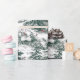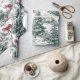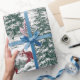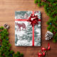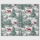 A snowy woodland scene in red and green toile features curious foxes, watchful owls, and fir trees dusted in snow. This vintage inspired Christmas wrapping paper brings a cozy forest feel to your holiday gifts with a touch of rustic charm.