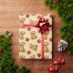 Un mignon motif de Noël de nounours souriants portant des chapeaux de Père Noël rouges et blancs, ainsi que des ornements rouges avec des étoiles et des rubans d'or.