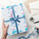 Papier mignon d'emballage cadeau de baby shower ou de naissance, comportant l'eau de giclement de coeur de baleine mignonne. Bleu turquoise d'Aqua et et papier d'emballage fait sur commande de baby shower pourpre. Personnalisez avec votre bébé pour être ou nom de bébé et salutation ou nombre nouveau-née. Lit actuellement la félicitation sur votre nouveau bébé Bailey. Une grande manière de customiser votre bébé versant les cadeaux ou le cadeau de naissance. Uniquement conçu par Sarah Trett.