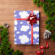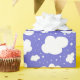Doodle nuages blancs sur motif arrière - plan violet sur papier d'emballage cadeau.