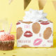 Motif de la Saint Valentin avec illustrations de nuggets de poulet, lèvres rouges et roses, xoxo, et texte "Nuggs & Kisses".