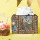 Papier d'emballage d'Halloween de style victorien unique, avec une image des étoiles dans le ciel nocturne formant le contour d'une sorcière volant sur un balai.