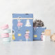 Ce papier d'emballage de Noël de noisette présente un motif mignon et fantaisiste de noix et de ballerines dansantes sur un arrière - plan bleu. Personnalisez-le en ajoutant le nom de votre enfant dans une police de script élégante. Le parfait cadeau personnalisé pour les vacances!