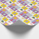 Papier d'emballage de Pâques mignon et festif avec motif à damiers coloré, oeufs de Pâques, lapins, champignons et arcs.