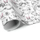Papier Cadeau OEufs de Pâques noirs et blancs, poules et fleurs