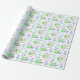 Les dinosaures de bébé pastel aux tons vert, lavande et bleu confèrent un joli papier d'emballage baby shower. Avec les dinosaures sont des fleurs, des papillons et des coeurs. Le texte bleu pastel dit "Oh mon bébé !"