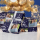 Typographie de script Pretty Oh Holy Night avec nativité sur un arrière - plan bleu marine avec 6 emplacements photo. Cette conception personnalisée unique de papier d'emballage photo fera vraiment ressortir vos cadeaux.