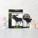 Enveloppez vos cadeaux dans ce papier imprimé noir et blanc d'orignal. Ce papier rustique présente une silhouette d'orignal avec des branches de pins.