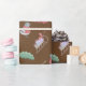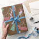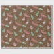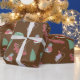 Papier d'emballage de Noël Brown avec un design charmant de sapins, d'oiseaux habillés en pull avec des oreillons, des feuilles verts, des sprigs de baies sèches et des traîneaux remplis de cadeaux de Noël pour ajouter une touche unique et fantaisiste à votre emballage cadeau de Noël cette année.