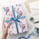 Papier Cadeau Oiseaux roses et noirs sur un Motif de branche d'a