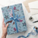 Papier Cadeau Oiseaux rouges et rennes ( bleu )