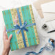 Papier Cadeau Or Art déco et français turquoise