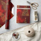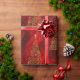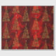 Un superbe papier d'emballage doré et rouge de Noël avec un motif d'arbres de Noël dorés métalliques, le tout fait de petits flocons d'or et des formes de flocs de neige, sur un arrière - plan rouge luxueux et brillant. Ce papier de Noël très élégant apportera une touche sophistiquée et luxueuse à votre cadeau enveloppant ces vacances.