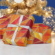 Enhance your gift giving with a touch of glamour by incorporating our orange and gold-toned stained glass in a seamless pattern. This perfect design adds a stylish element to any gift wrapping.