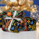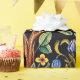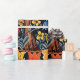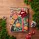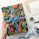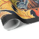 PAPIER CADEAU ORANGE ARBRE AVEC FEUILLES VERTS, FLEURS