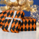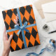 Papier Cadeau Orange Black Harlequin Diamonds Checkers Design