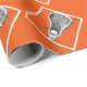 Emballage cadeau de lacrosse ou décoration pour événement sportif avec un motif de bâtons de lacrosse sur fond orange.