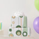 Cette oeuvre présente un motif épuré et minimaliste de formes circulaires et allongées, disposées dans un alignement vertical rappelant les motifs rétro-futuristes. La composition utilise une palette de couleurs fraîches, vert, orange et crème douce, créant un look harmonieux et équilibré. Les cercles, certains solides et d'autres soulignés, semblent flotter le long de lignes verticales minces, évoquant l'imagerie des planètes et des orbites. La combinaison de lignes épurées et de formes douces donne à l'oeuvre une atmosphère moderne mais nostalgique, mêlant esthétique moderne du milieu du siècle avec une touche de style contemporain.