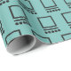 Ce papier d'emballage a un design moderne du milieu du siècle de carrés avec une ligne et une ligne de cercles, tous noirs, répétant à travers le design sur un champ de mer. Si vous aimez le design mais préférez différentes couleurs, envoyez-moi un message.