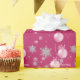 Ajoutez une touche festive à vos cadeaux de vacances avec ce papier d'enveloppement rose ornements de Noël. Présentant des ornements de Noël étincelants et des billes suspendues ornées de rubans et d'arcs, le design est parsemé de délicats flocons de neige blancs pour un thème de vacances d'hiver magique. Un accueil de Noël joyeux et élégant complète le look, créant un thème hivernal intemporel parfait pour tout cadeau. Un cadeau de vacances de charme pour rendre vos forfaits aussi spéciaux que ce qu’il y a à l’intérieur.