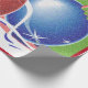 Cette image représente des boules de Noël en rouge, bleu et vert. Rubans et étoiles en blanc, bleu et rouge sont visibles partout. Un dossier vert a été ajouté. Une parties scintillant a été ajoutée à cette conception. Une bordure rouge a été ajoutée. Ce papier d'emballage de Noël est disponible en différents styles et tailles.