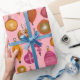 Les ornements de Noël rétro du dernier milieu du siècle sont si mignons et continuent à être appréciés aujourd'hui. Voici un motif des années 1950 dans un style d'illustration aquarelle avec des billes et des accents. Ce rouleau de papier d'emballage présente des ampoules colorées dans les tons magenta et orangé sur un arrière - plan de vacances rose.