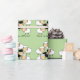 Drôle papier d'emballage de mouton noir. Un groupe de moutons blancs aux visages roses et aux oreilles grises entoure un mouton noir laineux, aussi au visage rose et aux oreilles grises. Ci-dessous, une légende "ose être différent" en lettres noires.