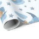 Papier Cadeau Ours Bébé Couché Bleu Sur Lune Nuages & Étoiles