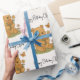 Papier Cadeau Ours en peluche avec fleurs personnalisées - Anniv