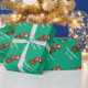 Ours en peluche de Noël avec ballon cardiaque Papier d'enveloppement de vacances. Roulettes cadeaux personnalisées avec joli dessin animé. Couleur verte ou personnalisée. Ajoutez votre propre salutation et nom. Mignonne ours avec chapeau de Père Noël.