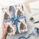 Le motif répété sur ce papier d'emballage de Noël comprend l'image d'un adorable petit ours blanc blanc vêtu d'un chapeau de Père Noël rouge et blanc et d'une écharpe rouge. Il tient une étoile blanche à placer sur l'arbre de Noël décoré. Le texte rouge et vert dit MERRY CHRISTMAS", avec le nom de votre enfant et votre signature ci-dessous. Parmi les autres images incluses dans le motif, on trouve des flocons de neige décoratifs rouges, des cadeaux aux enveloppements éclatants et des sucres de canne attachés avec un arc.