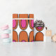 Ce papier d'emballage a un design moderne du milieu du siècle de répétition ovales orange avec ovales roses à l'intérieur.