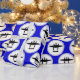 Silhouette classique de P-38 Lightning dans un cercle blanc, avec arrière - plan bleu pour célébrer Hanoukka. Papier d'emballage cadeau parfait pour votre ventilateur P-38 préféré. De nombreuses tailles à choisir.