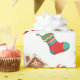 Enveloppez vos cadeaux de Noël avec ce papier d'emballage festif qui comprend des flocons de neige, des sucres de canne, des maisons en pain d'épice et des bas de Noël.