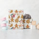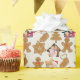 Créez votre propre papier d'emballage photo amusant et original. Le design a un motif de biscuits de gingergread, y compris l'homme de pain d'épices, maison de pain d'épices, arbre de noël, stockage et étoiles. Le modèle photo est configuré pour ajouter 3 de vos images, qui seront recadrées à une forme carré (vous trouverez peut-être plus facile de le faire avant de les télécharger). Vos photos remplacent certains des biscuits en pain d'épices et en forme d'étoile.