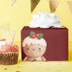 Biscuit féminin en pain d'épices sucré avec arc creux dans ses cheveux en pain d'épices. Arrière - plan rouge. Fait en aquarelles. Parfait pour tout âge pour tous vos emballages cadeaux.